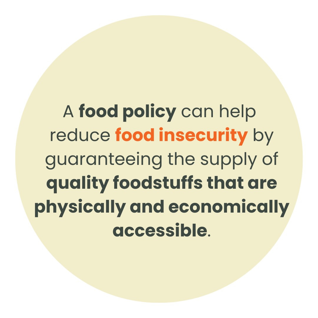 Adopting a food policy makes it possible to regulate the food supply and food-related activities in order to promote the citizens’ health and well-being.